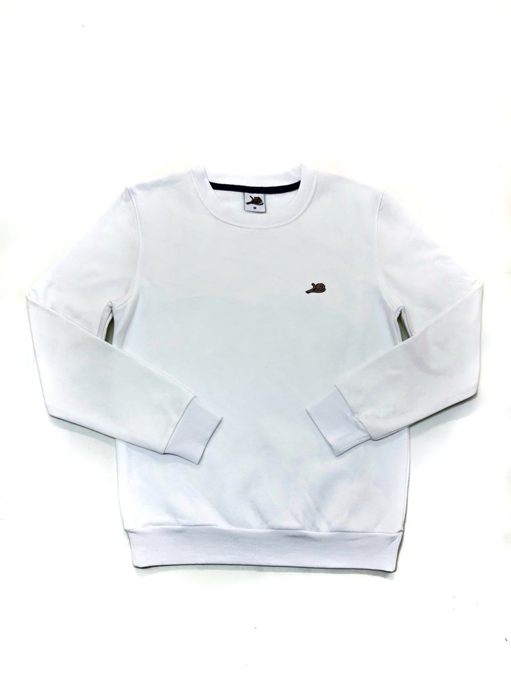 Beyaz Unisex Bisiklet Yaka Sweatshirt