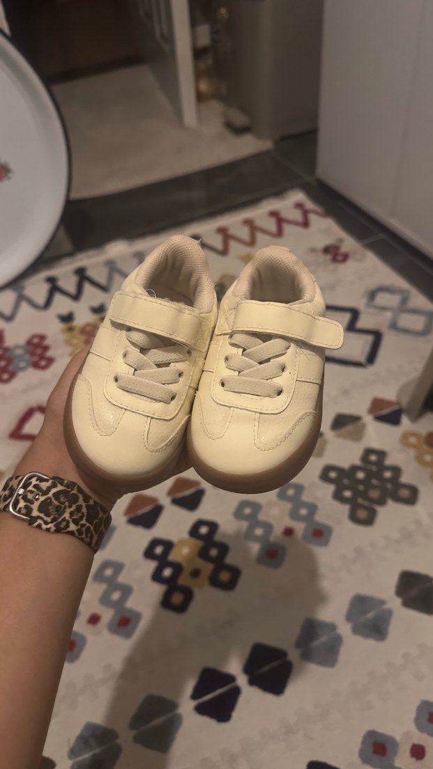 Beyaz, desensiz, velcro bantlı erkek çocuk spor ayakkabısı, kauçuk tabanlı ve günlük sokak tarzına uygun.