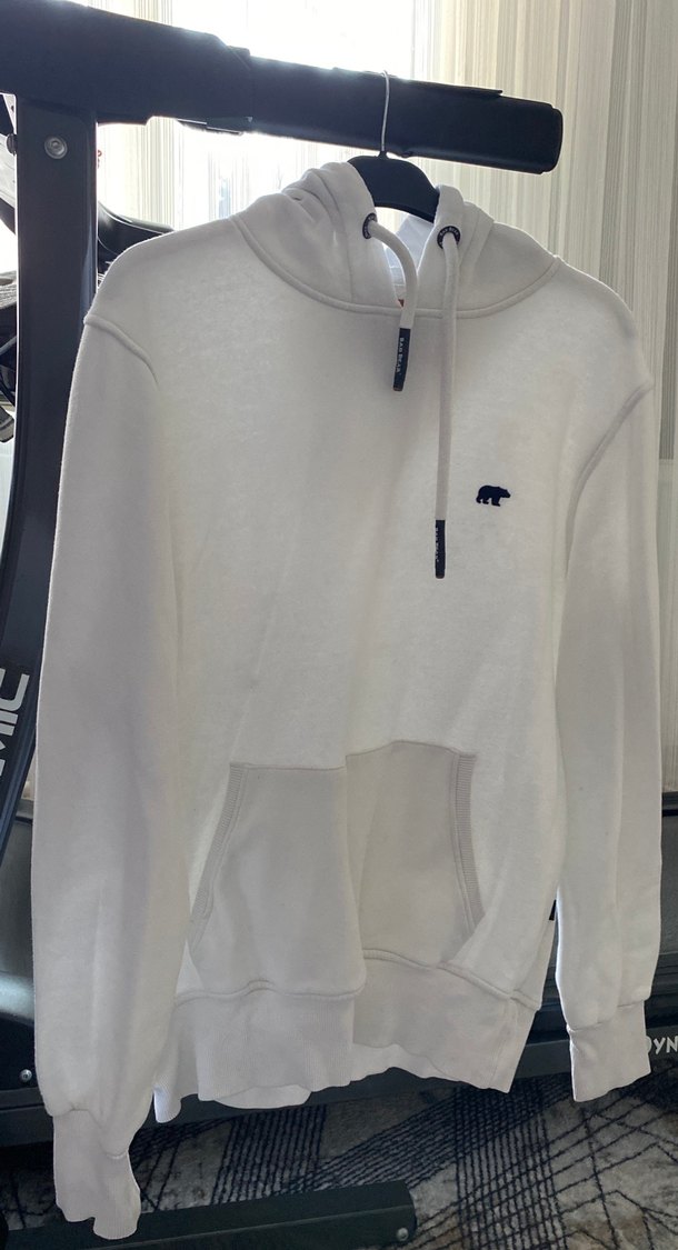 Beyaz renkli, yuvarlak yakalı ve uzun kollu Unisex sweatshirt, yumuşak ve sıcak kumaştan, bol kesim. Önünde küçük ayı logosu ve cep bulunur, rahat sokak stili için uygundur.