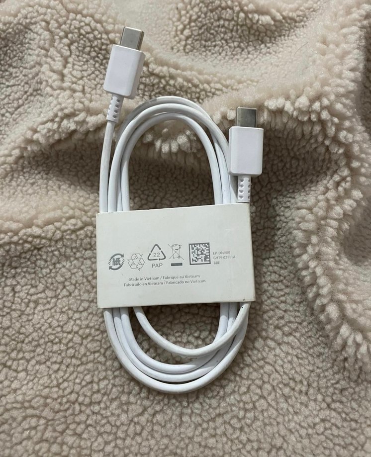 Çift taraflı Dayanıklı uçlara sahip beyaz USB-C telefon şarj kablosu, hızlı şarj için uygundur. Vietnam'da üretilmiştir. ⚡typc