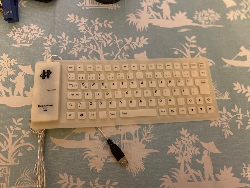 USB kablolu beyaz klavye, kompakt düzen ve kolay yazım için açık renk tuşlara sahip. ⌨️
