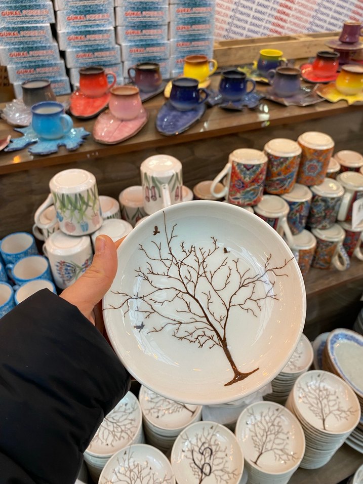 Beyaz Üzerine Ağaç Desenli Seramik Tabak