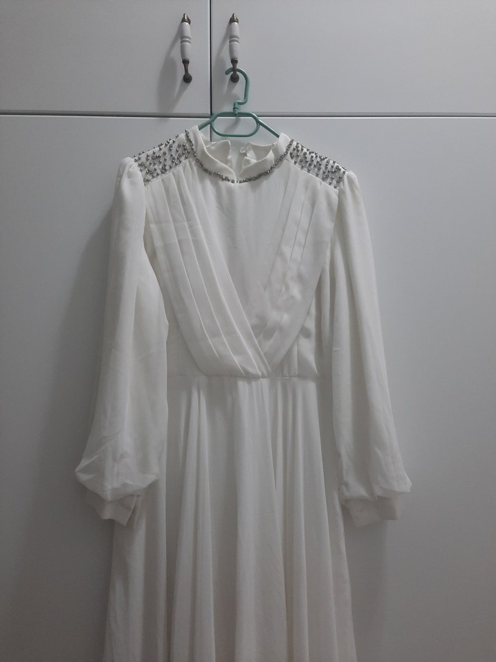 Beyaz Uzun abiye elbise