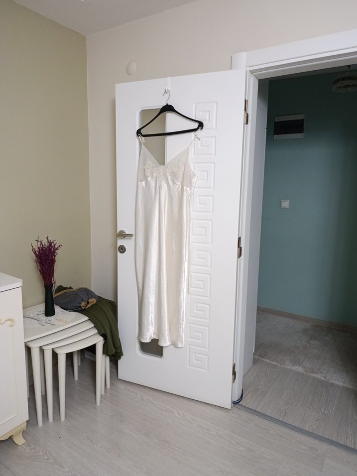 Beyaz Uzun Askılı Hamile Gecelik