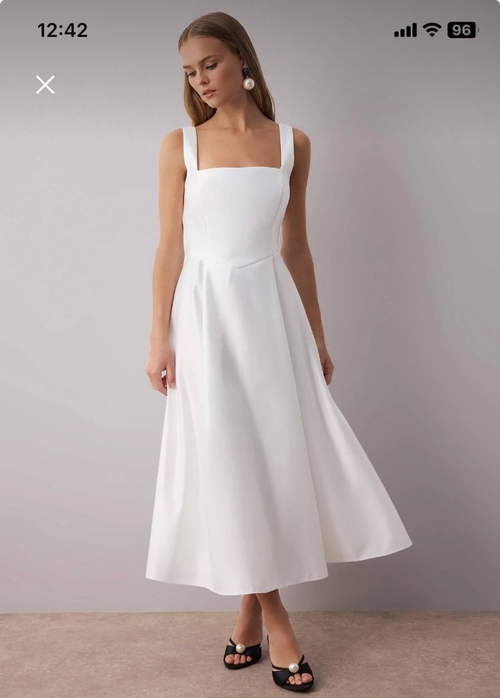 O kadar güzel bi elbise ki bikaç saat mezuniyetimde kullandım ve herkes çok beğendi. kumaşı çok tok ve kabarık duruyor prenses gibi. ben 167 boyundayım 55 kiloyum üst bedenime xs-s arası giyiyorum bana tam oldu. ürünü ne zaman aldığımı da ekledim çok yeni fiyatı ona göre değerlendirin Beyaz renkte, askılı ve uzun kesim modern klasik tarzda, sade ve şık gelinlik. Klasik ve minimal bir görünüm sunar.