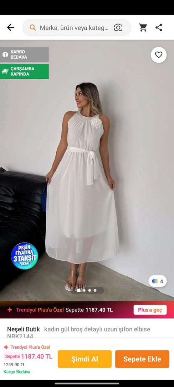Kolsuz, beyaz uzun elbise yüksek yakalı, salaş ve drapeli tasarıma sahiptir. Minimalist ve desensiz stiliyle düğün gibi özel günlere uygundur. Sentetik kumaştan, klasik ve bohem tarzda. Gül tokası vardır. İade süresini kaçırdığm için satıyorum. Fiyatı 1200tl.