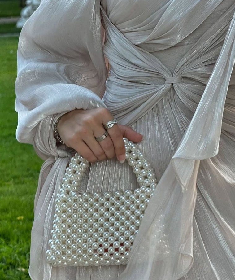 Bu beyaz uzun abiye elbise, drapeli tasarımı, uzun kolları ve yüksek yakası ile ipeksi kumaştan üretilmiştir. Regular fit ve modern, mütevazı bir stile sahiptir, düğünler için uygundur. ✨ kiralik olarak 1350 tldir 36-38-40-42-44 mevcuttur KIRALIK