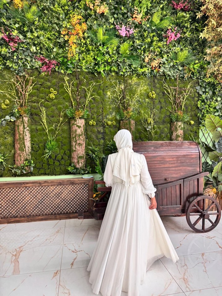 Beyaz Uzun Drapeli Tesettür Gelinlik