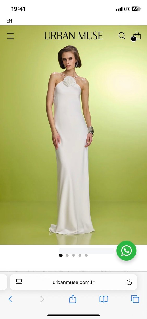 Straplez beyaz uzun düz gelinlik, minimal tasarımlı ve kolsuzdur. Yaka kısmında zarif çiçek detayı vardır, çağdaş ve klasik şıklığı bir arada sunar. Ürünü isteme gecemde kullandım sadece 1 defa 7.000 tlye satın aldım