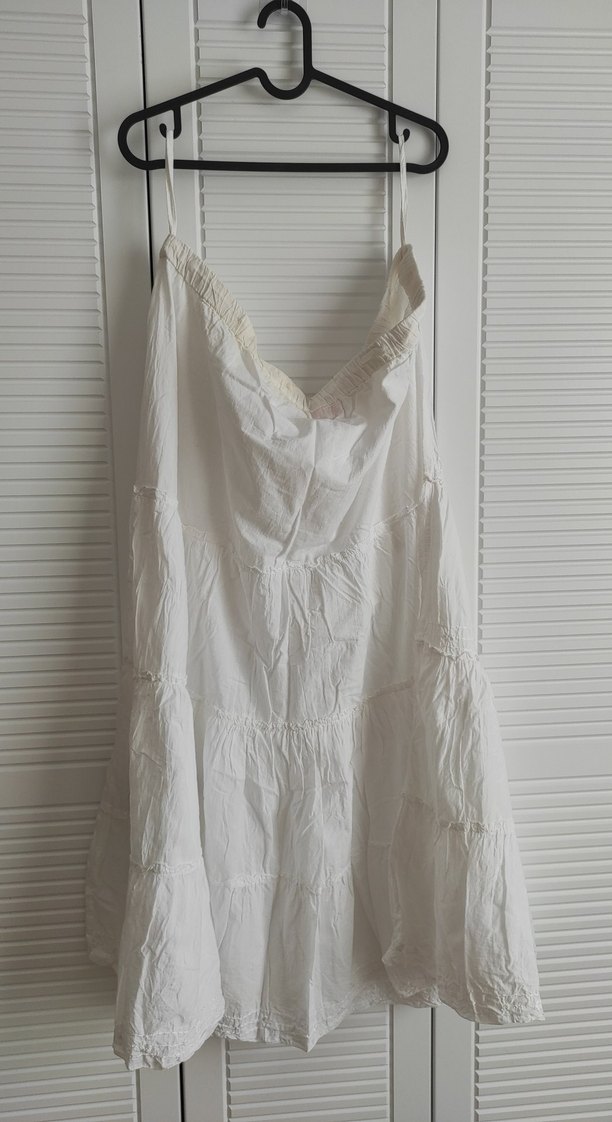 Beyaz uzun hamile keten etek, bol kesim ve drapeli tasarıma sahip, bohem tarzını yansıtıyor. Desensiz ve günlük kullanıma uygundur. bel kısmında kullanılmadığı için sarı leke olmuş..