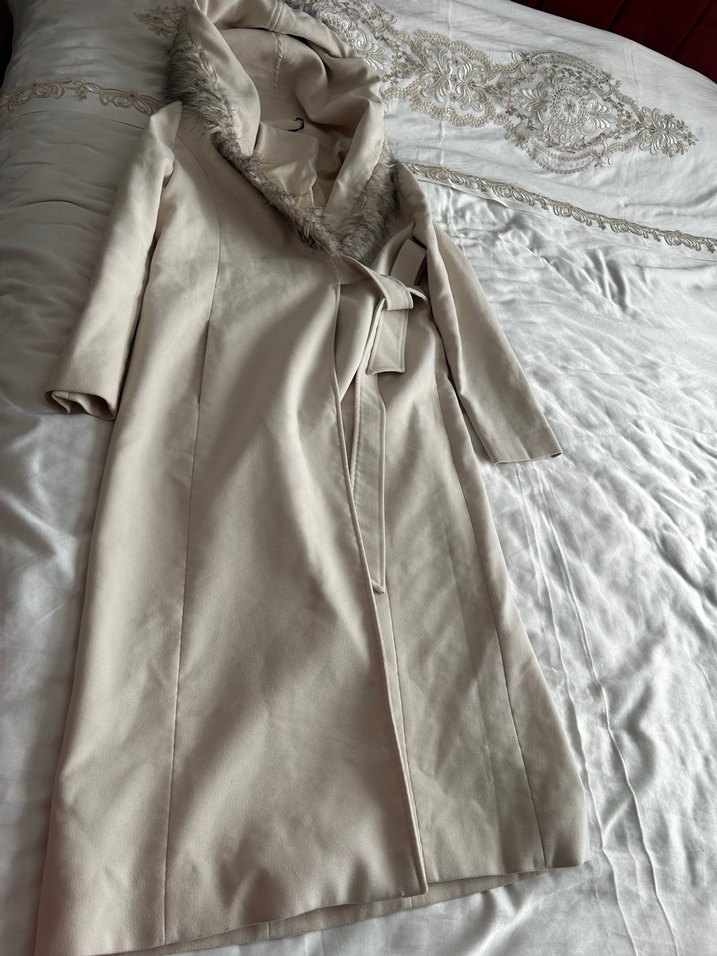 Beyaz Uzun Kadın Kaban, Kürk Detaylı