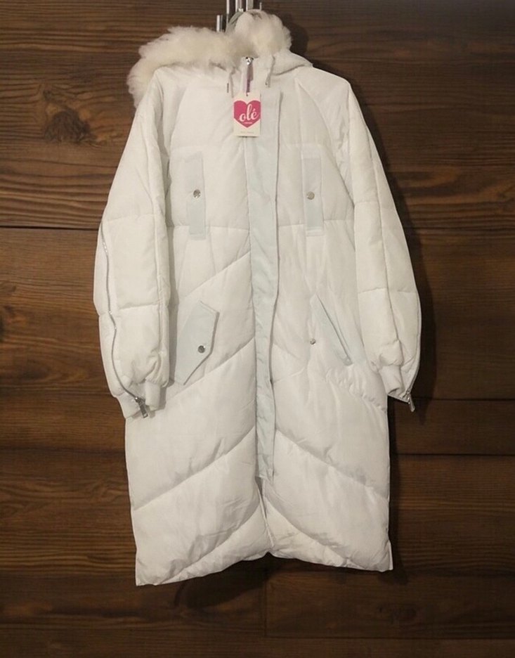 Uzun, beyaz, yumuşak ve sıcak kumaştan yapılmış, kapüşonunda kürk detaylı kadın kışlık mont. Salaş kesimi, uzun kollu ve yaka tipi kesik yakadır. ❄️