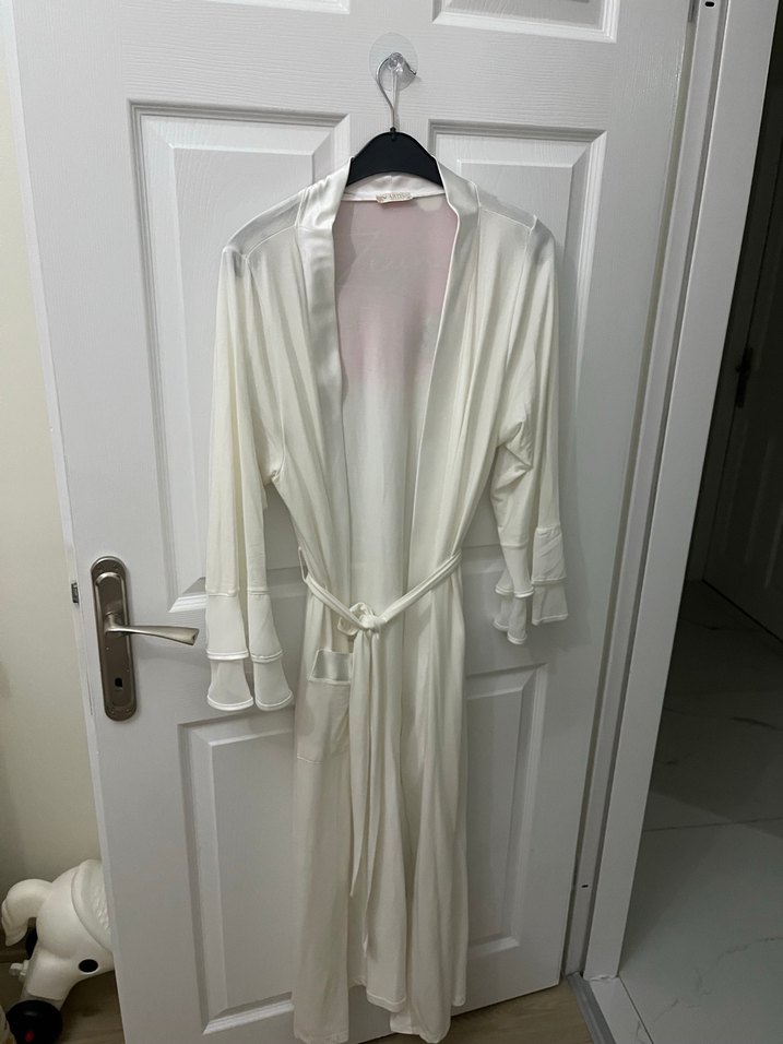 Beyaz Uzun Kadın Sabahlık