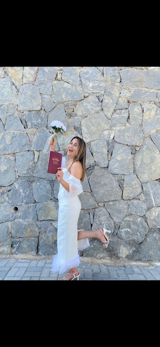 Beyaz Uzun Kayık Yaka Nikah Elbisesi