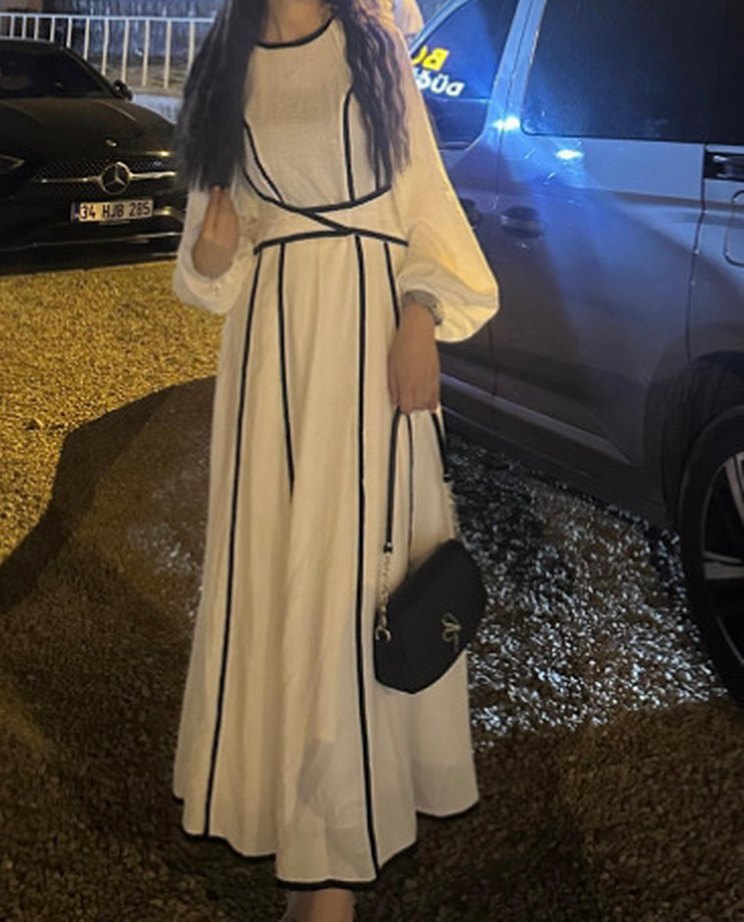 Beyaz Uzun Kemerli Kadın Elbise