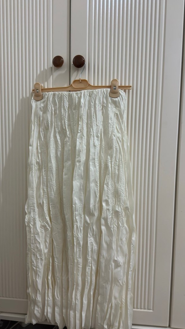 Beyaz Uzun Keten Pilili Etek kırışık