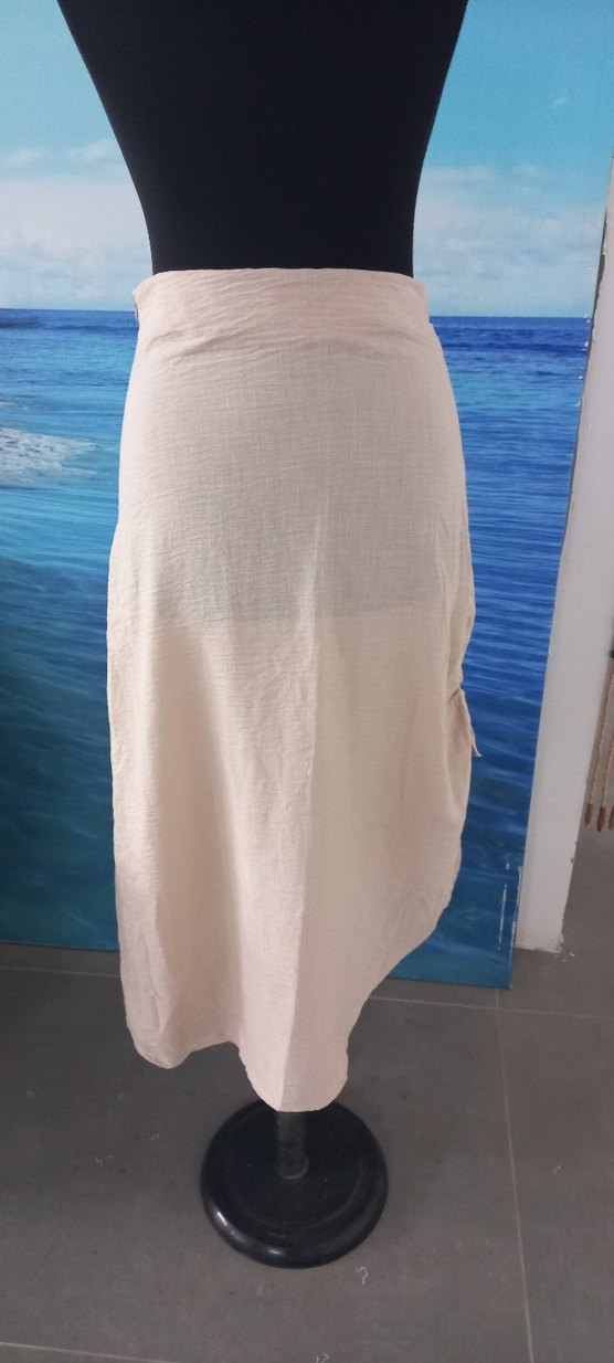 Beyaz uzun keten etek, salaş kesim ve drapeli tasarımıyla öne çıkar. Düz ve bohem tarzı, plajda rahat kullanım sağlar. kenari kendinden buzmelidir