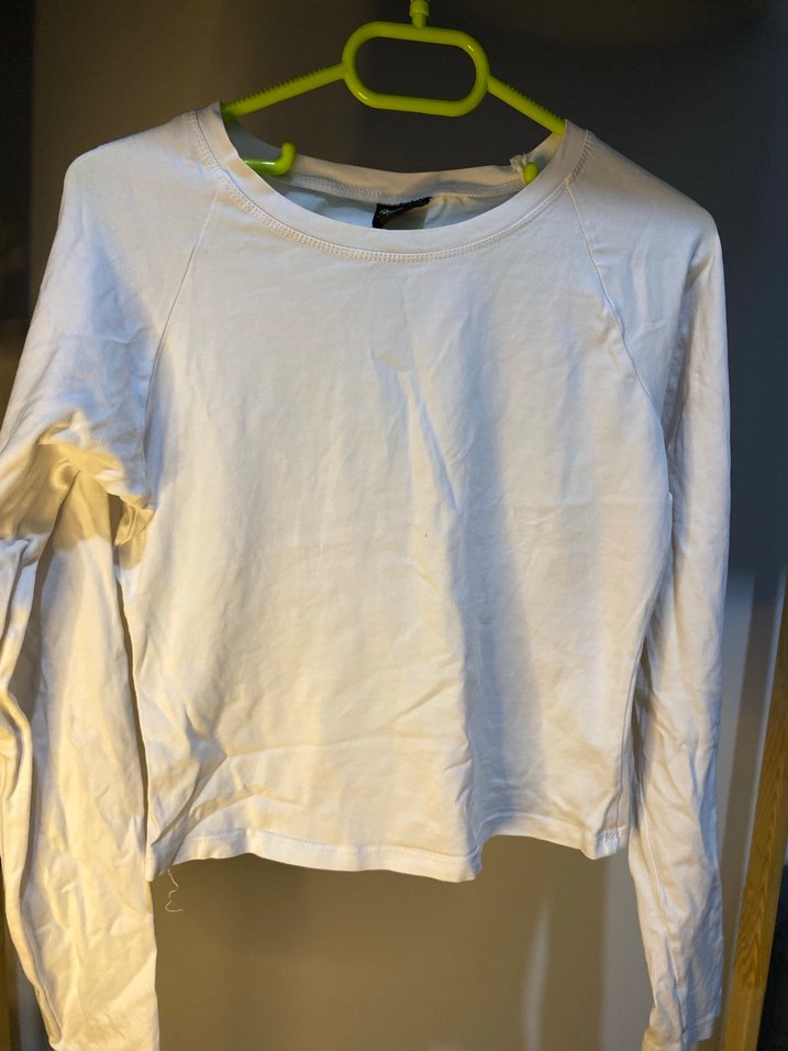 Beyaz, uzun kollu, yuvarlak yaka tişört. Yumuşak kumaştan, bol kesim ve sade tasarımlı, rahat bir basic parça.