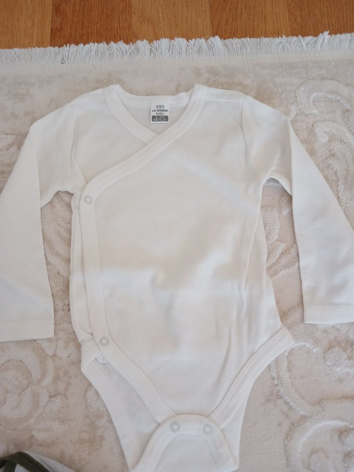 Beyaz renkli, uzun kollu bebek body, V yakalı ve desensiz. Rahat ve yumuşak kumaşla yapılmış, zahmetsiz şıklık sunar.