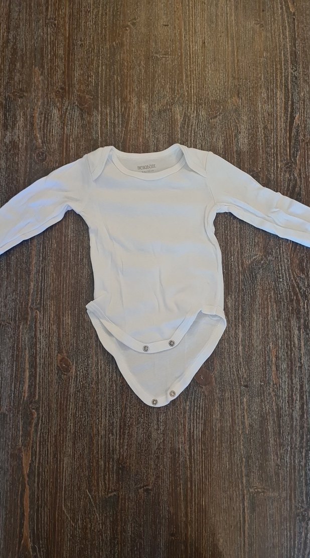 Beyaz renkli, uzun kollu, yuvarlak yakalı bebek kız body, çıtçıtlı ve sade şık tasarıma sahip.