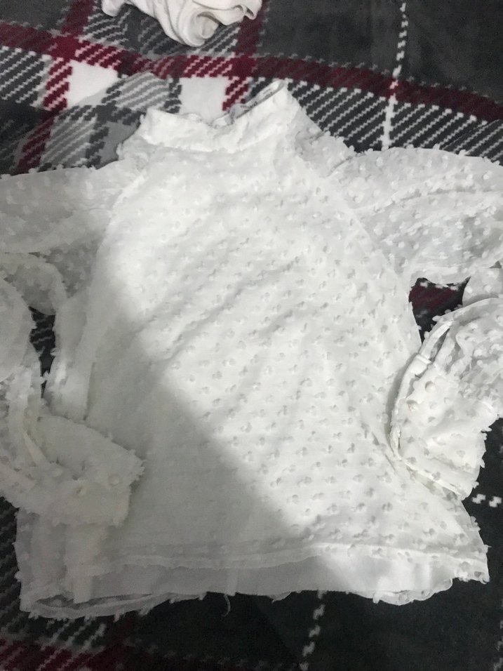 Beyaz Uzun Kollu Beyaz puantiye kolları tül Kadın Bluz