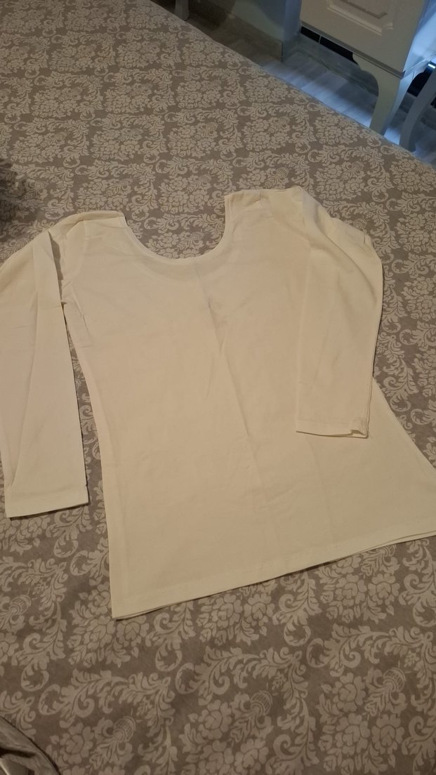 Beyaz renkli, keten kumaştan yapılmış, uzun kollu ve kayık yaka, bol kesim bluz. Günlük kullanım için sade ve rahat bir stil sunar. Standart