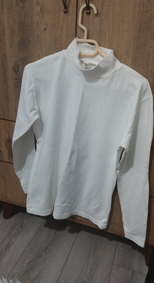 Beyaz, desen içermeyen çocuk uzun kollu içlik, yumuşak ve pürüzsüz dokuludur. Üst üste giymek için uygundur.