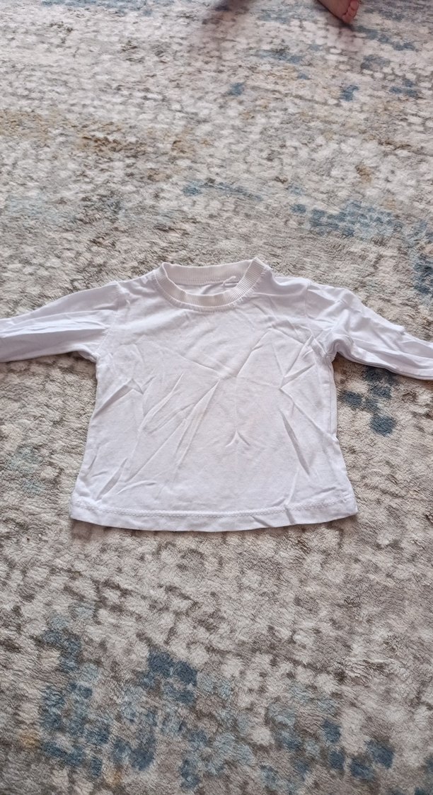 Yumuşak ve rahat kumaştan yapılmış, düz beyaz uzun kollu çocuk body.