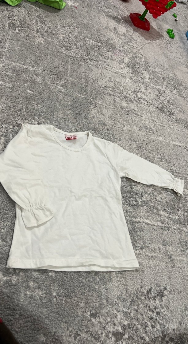 Beyaz, uzun kollu ve desensiz çocuk tshirt.yumuşak kumaştan üretilmiştir.