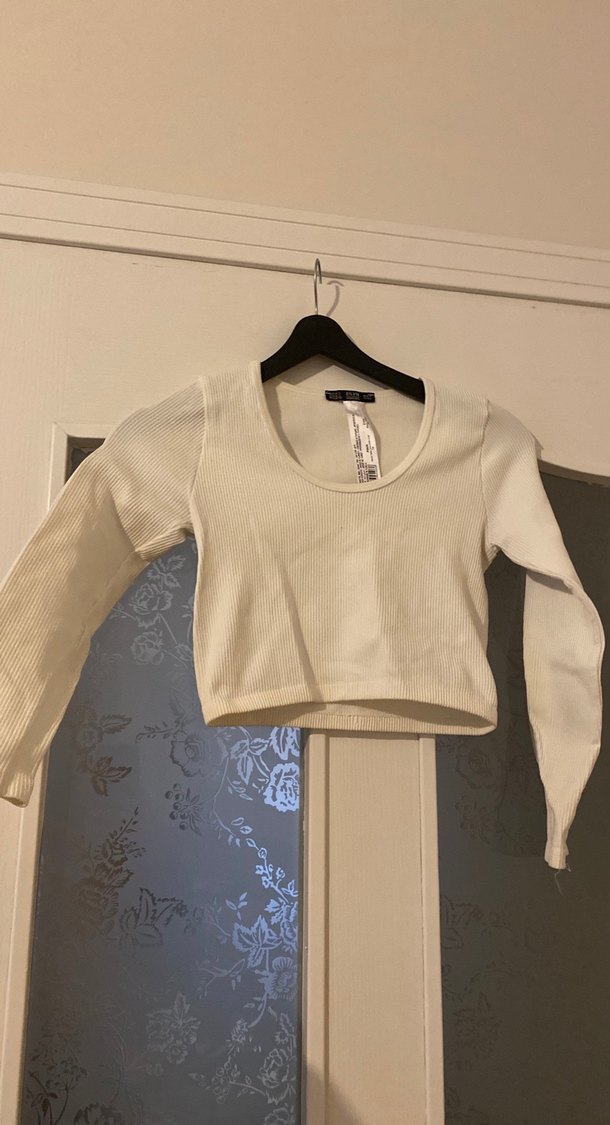 Beyaz Uzun Kollu Crop Top