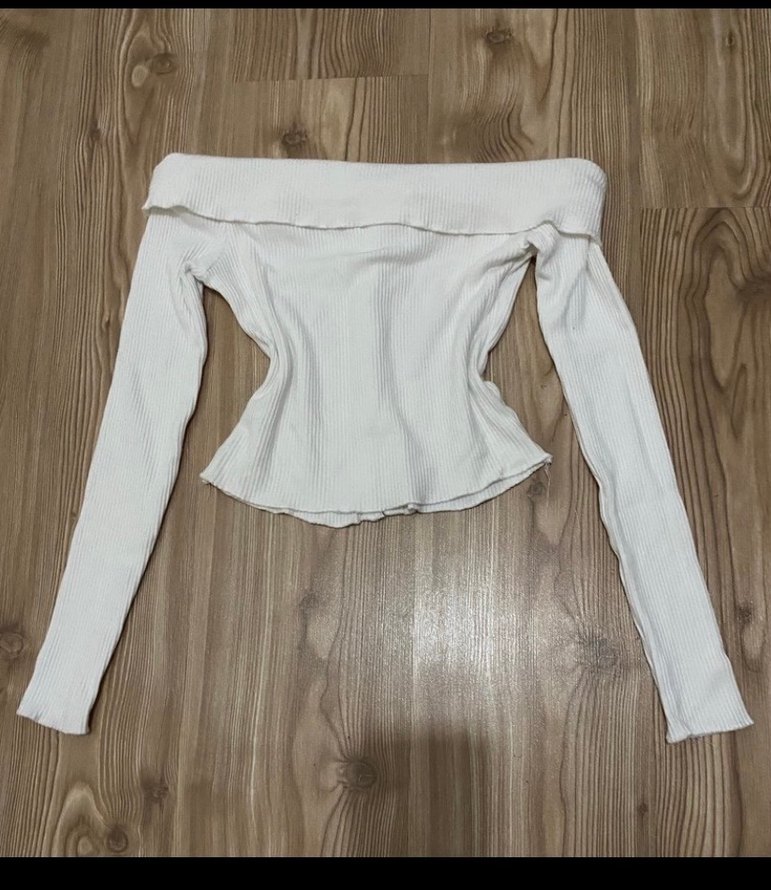 Beyaz, uzun kollu ve tek parça kesim olan bu crop top, rahat keten kumaştan yapılmıştır ve günlük sokak modasına uygundur.