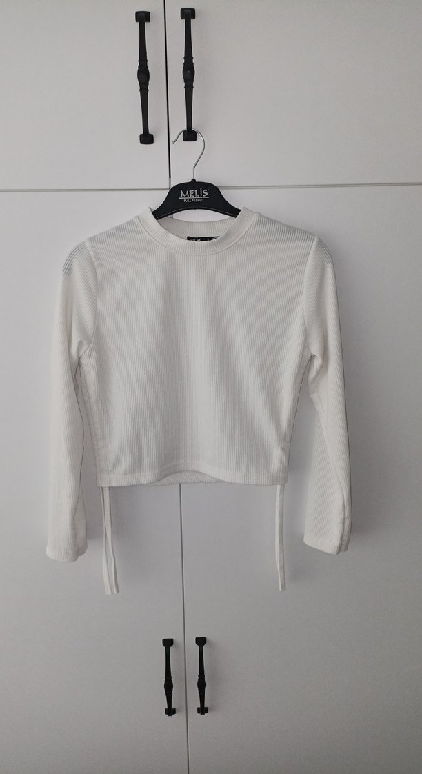 Beyaz Uzun Kollu Crop Top