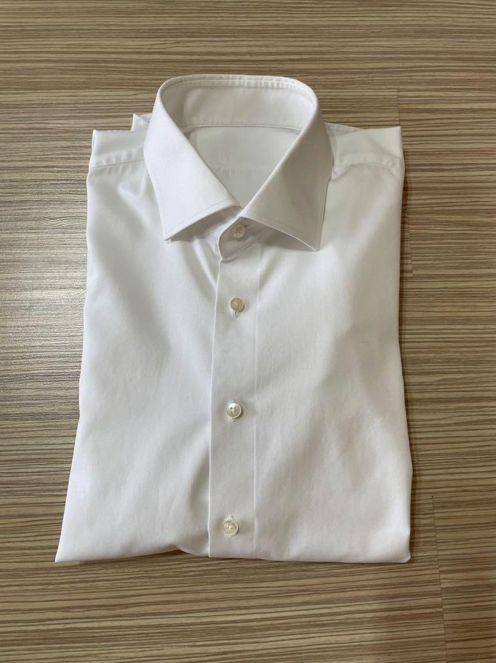 Beyaz, uzun kollu, düğmeli erkek gömleği. Yakalı ve regular fit kesim, pürüzsüz pamuklu kumaştan. Ofis kullanımı için uygundur. Kar gibi beyaz tertemiz, boy 80, iki kol arası genişlik 57 cm, marka temsilidir