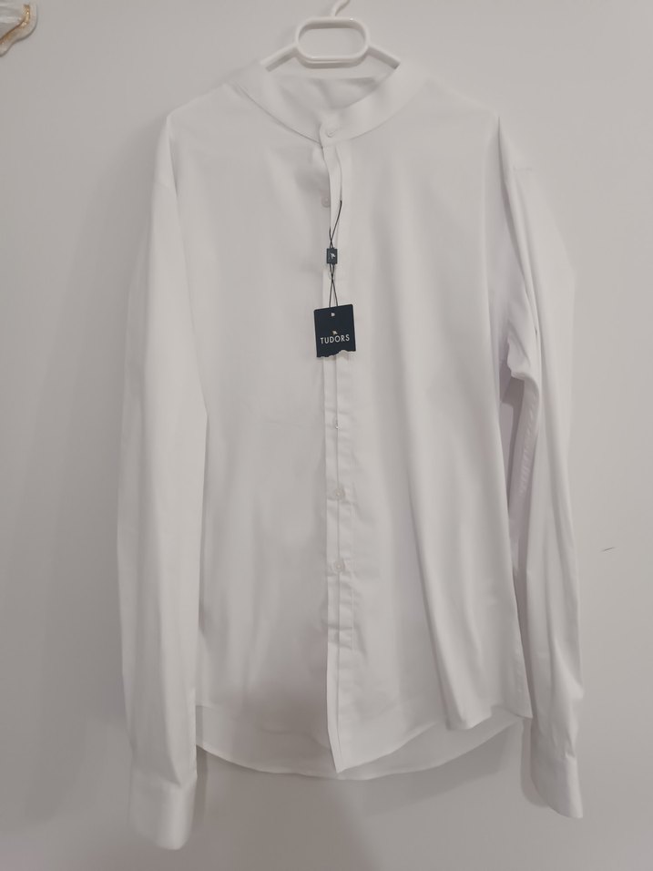 Bu beyaz erkek gömlek pamuk kumaştan olup, uzun kollu ve yakalıdır. Normal boy ve regular kesimdir. Desensiz sade tasarımı, ofis ve iş ortamına uygundur. Rahat ve şık bir görünüm sunar. Hiç kullanılmamıştir ölçüler fotoğraf larda eklidir