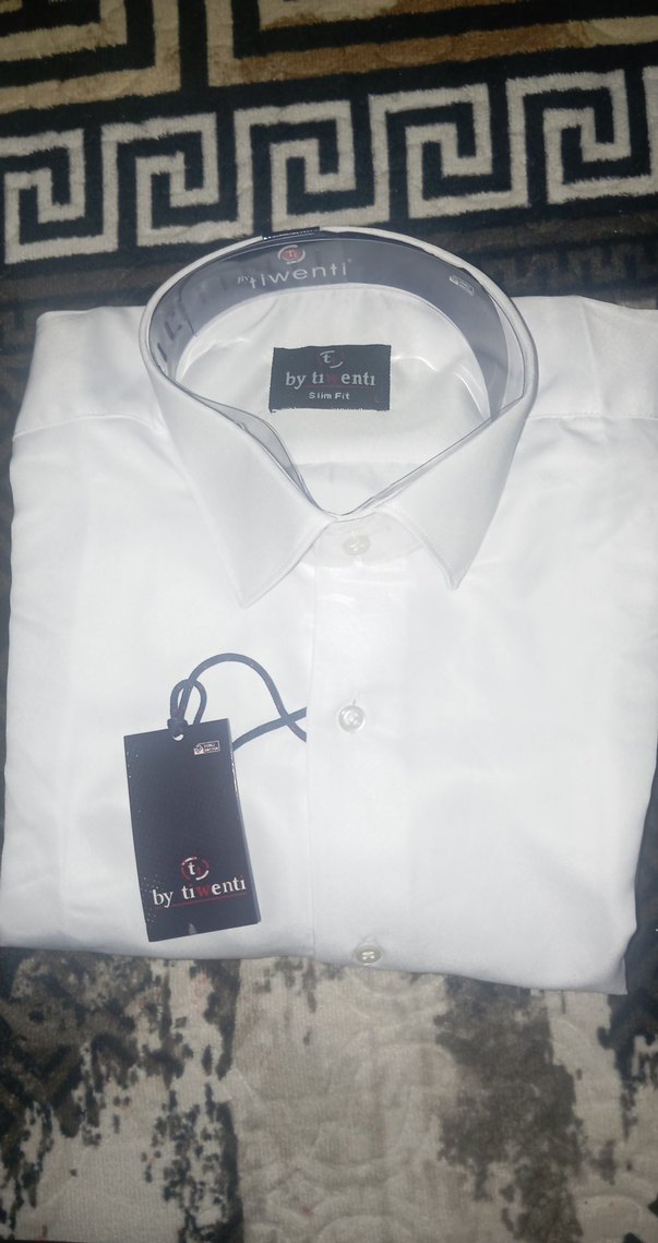 Beyaz, uzun kollu, erkek gömleği. Düzenli kesim ve parlak yüzeye sahip, ofis ve sokak stiline uygun, sentetik kumaştan midi boy. takım elbiselerin altına da uygundur