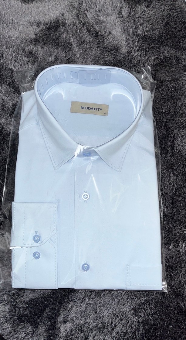 Bu mavi erkek gömlek, uzun kollu, çentikli yakalı ve düğmeli ön tasarıma sahiptir. MODAFIT markalı, düz ve desensiz, sentetik kumaştan, normal kesimdir. Ofis kullanımı için uygundur.