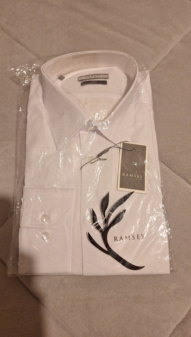 Ramsey markalı beyaz erkek gömlek, uzun kollu ve klasik yakalıdır. İpek gibi dokusuyla ofis ve günlük kullanıma uygundur. Düğmeli ve normal kesimdir. %60 pamuk olduğu için kolay ütülenir.