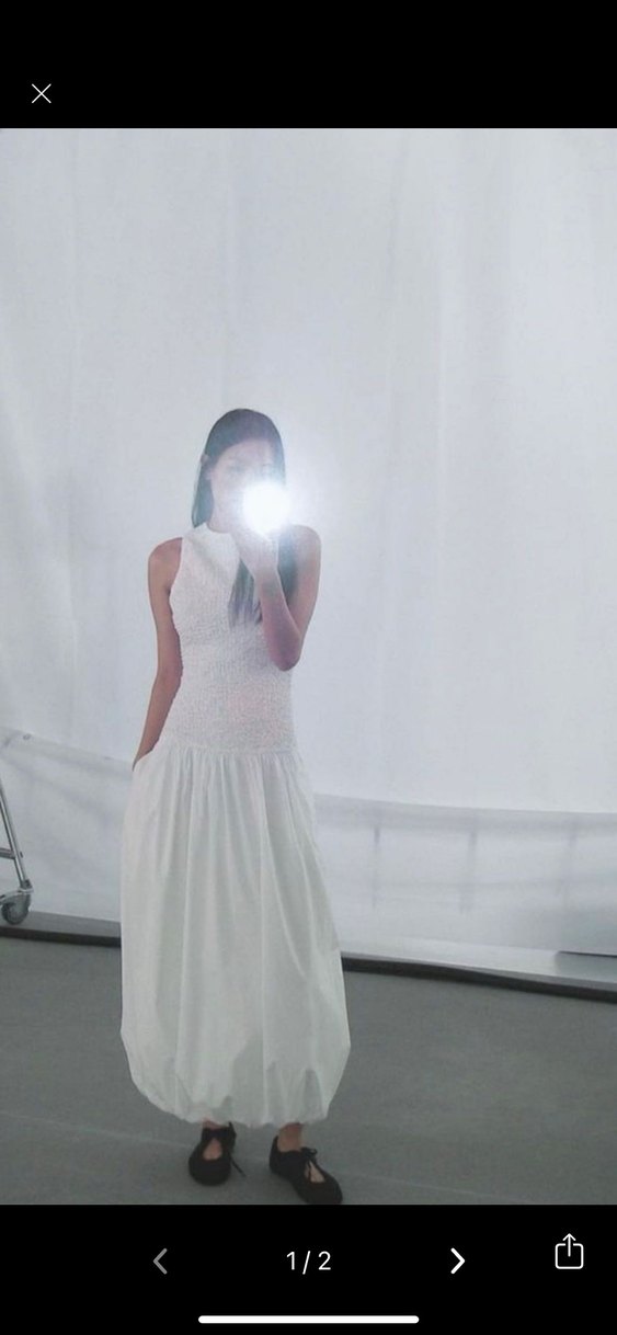 Bu beyaz gelinlik, straplez, uzun ve kolsuz tasarımıyla minimal ve şık bir görünüm sunar.