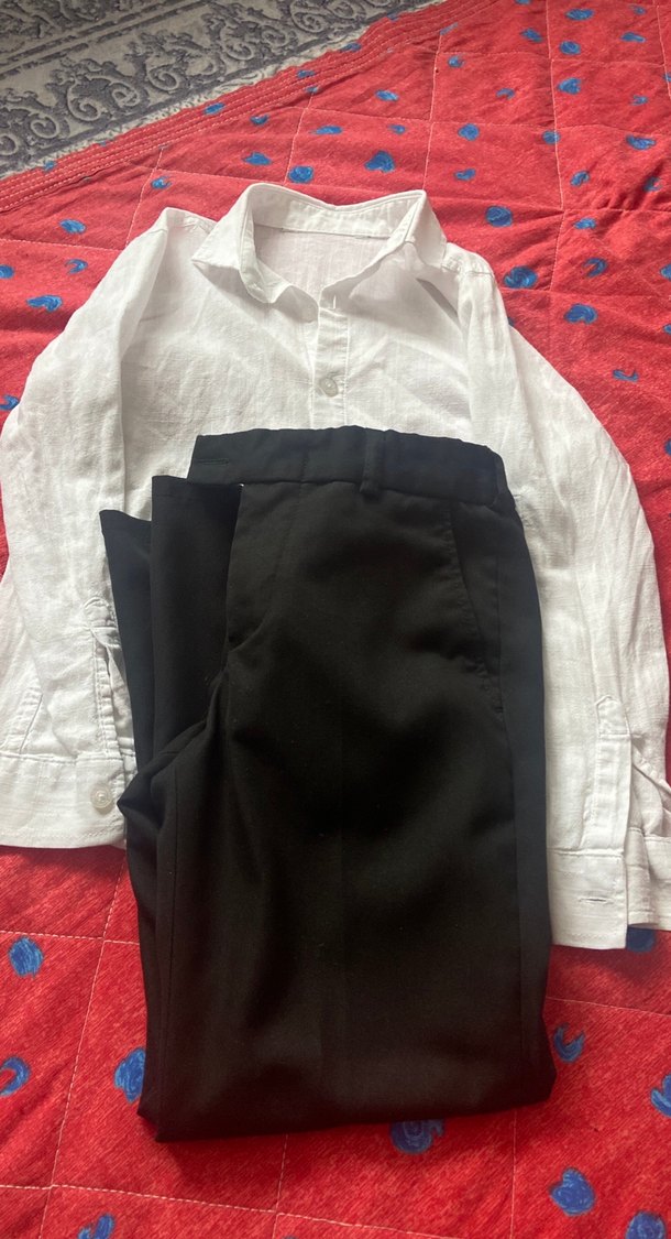 Beyaz Uzun Kollu Gömlek ve Siyah Pantolon Takım