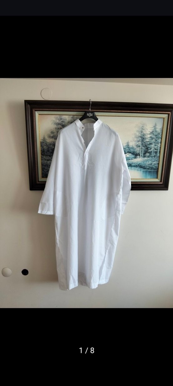 Beyaz, uzun boylu, Gayet güzel, pamuk kumaştan Yüksek yakalı ve kısa kolludur, hafif kumaştan üretilmiştir.