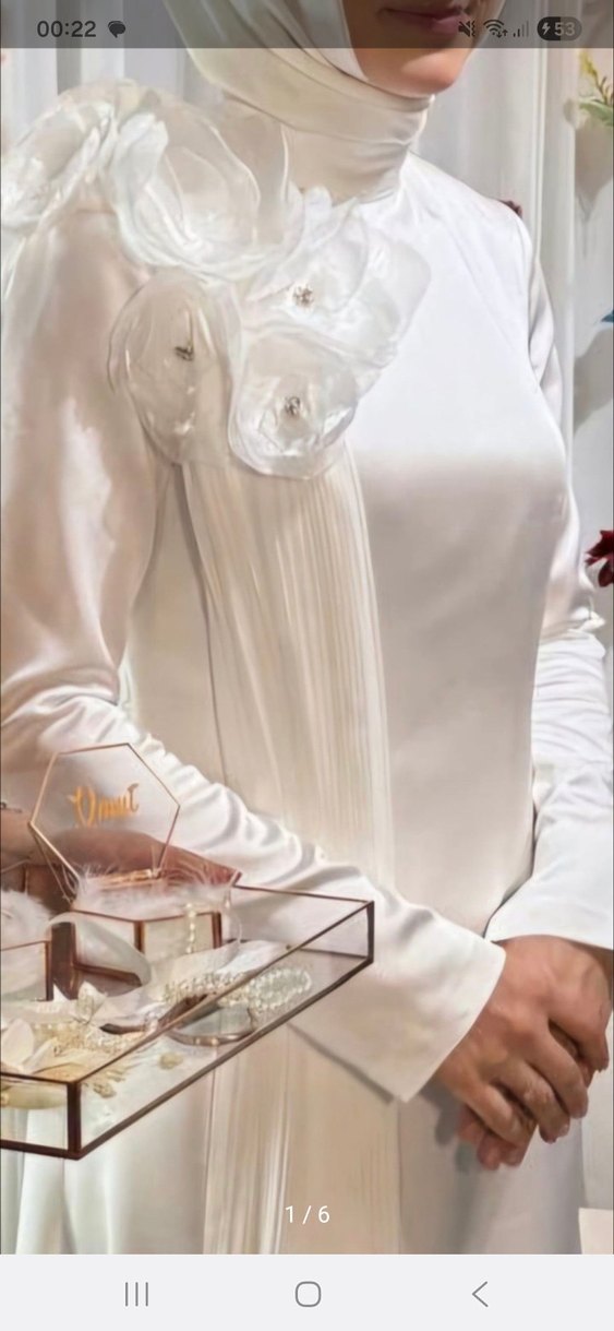 Beyaz Uzun Kollu hakim Yaka Drape Detaylı sateb Nişan Elbisesi
