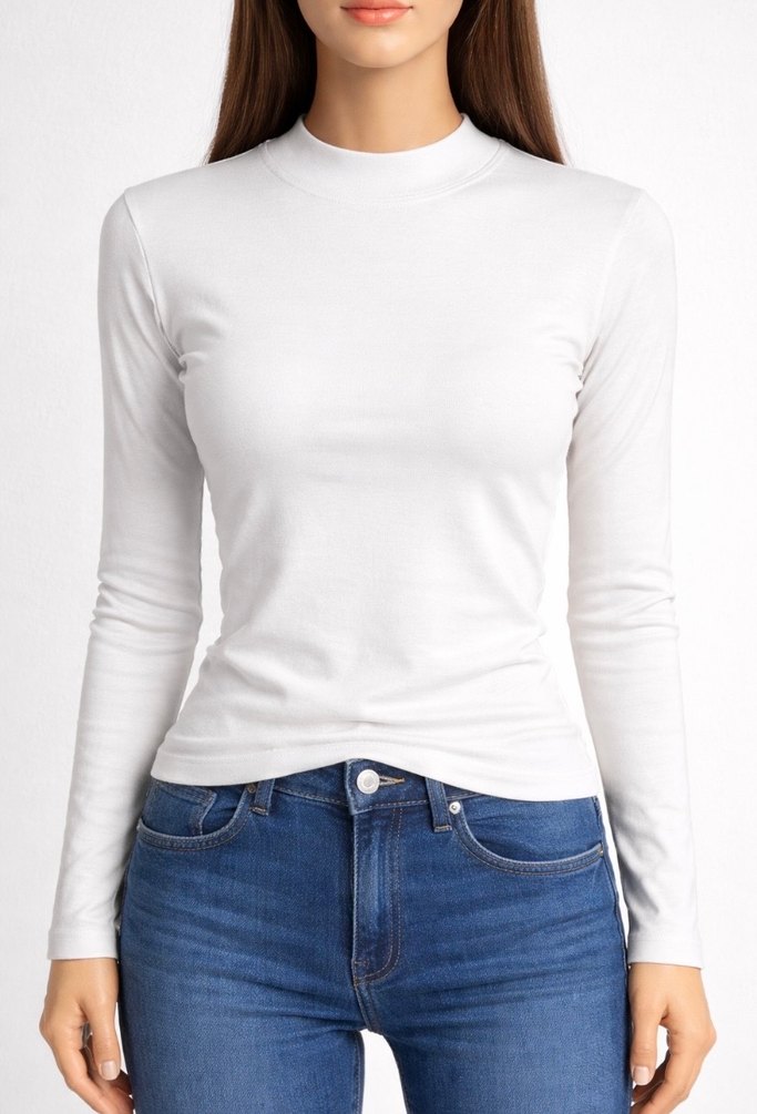Bu beyaz, uzun kollu ve hakim yaka badi M ve L beden mevcut