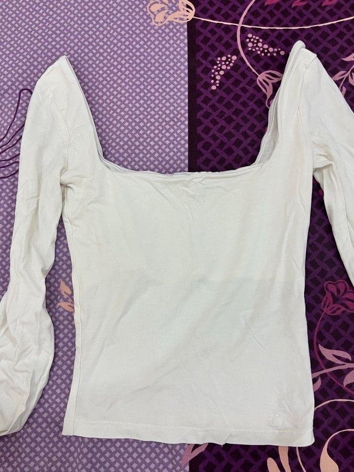 Pamuk kumaştan, uzun kollu ve tek renk beyaz, tekne yaka, vücuda oturan kadın bluz. Minimalist tarzıyla günlük sokak giyimine uygun, zahmetsiz şıklık sunar.