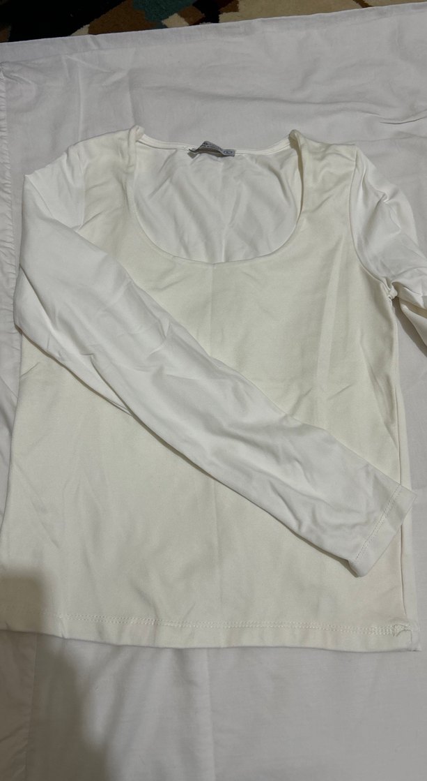 Pamuk kumaştan, uzun kollu ve yuvarlak yakalı beyaz, vücuda oturan kadın bluz. Minimalist tasarımıyla günlük rahatlık ve şıklık sunar.