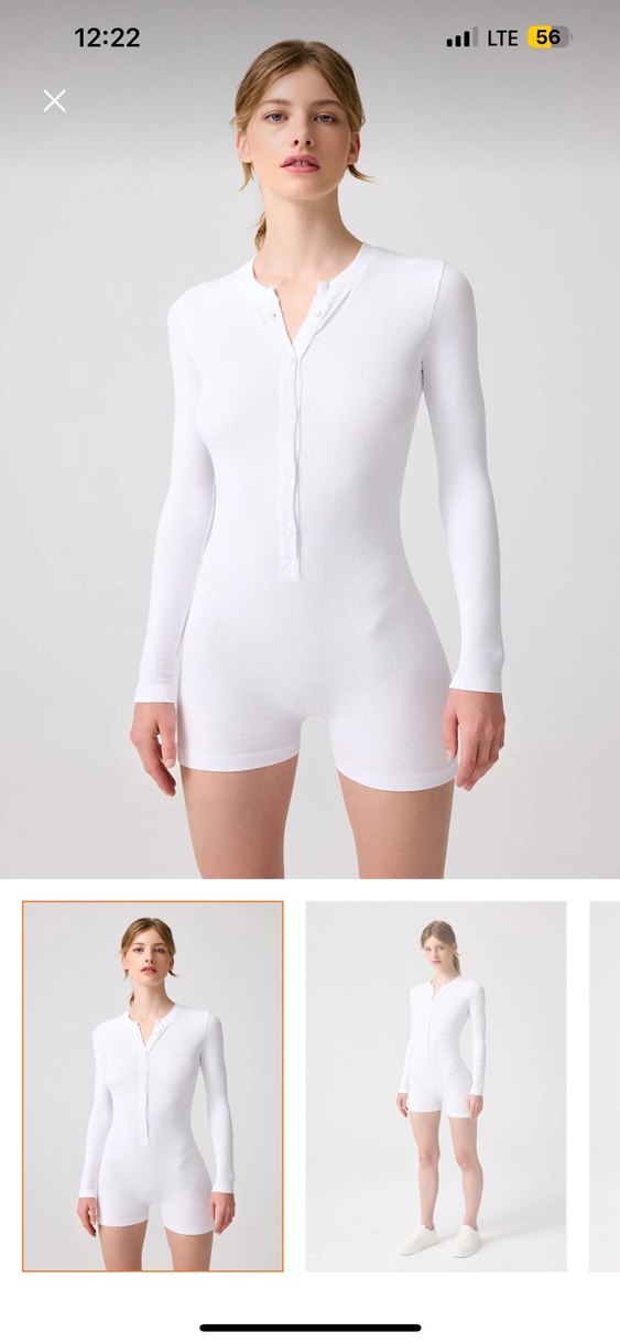 Beyaz renk, uzun kollu, yuvarlak yakalı, ince kesim mini tulum. Günlük kullanım için rahat, düz ve şık tasarım. ⚪