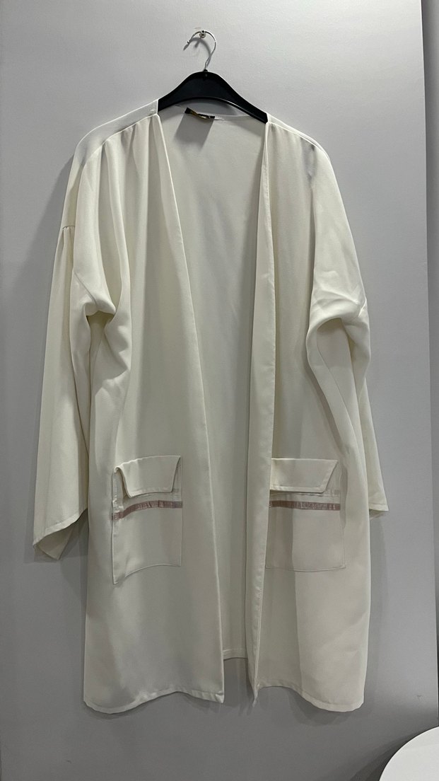 Beyaz Uzun Kollu Kadın Uzun Boy Kimono ceket