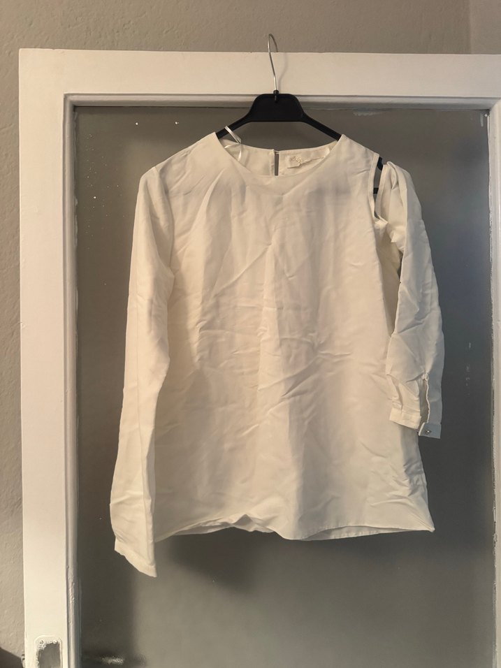 Beyaz, uzun kollu, keten kumaştan, yuvarlak yakalı ve bol kesim bluz. Minimalist tasarımıyla günlük kullanıma uygun, zahmetsiz şıklık sunar.