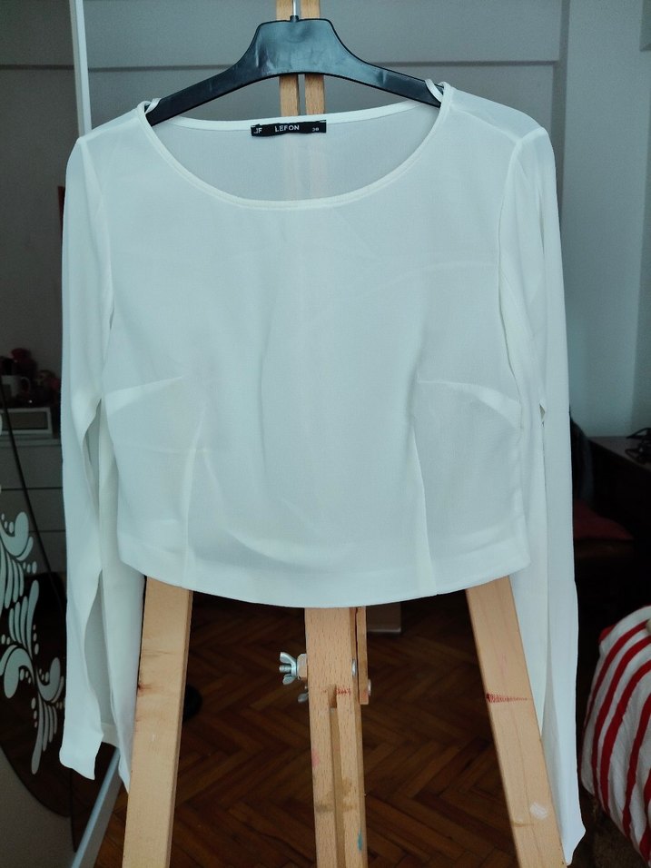 Beyaz Uzun Kollu Kısa Kesim gömlek