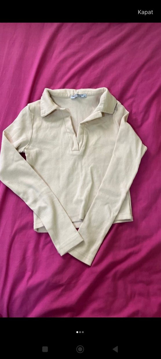 Beyaz, uzun kollu ve polo yaka kız çocuk tişörtü. Yumuşak ve sıcak kumaştan, sade ve şık, günlük sokak stiline uygun.