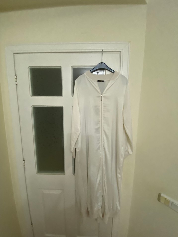 Bu beyaz kolları triko uzun boylu ve bol kesimdir, uzun kolludur. Minimalist, normcore tarzda ve desensizdir. Çok rahat kıvrışma yapmaz.